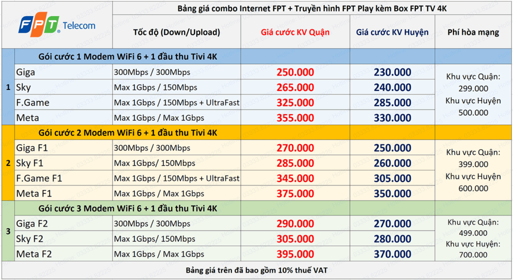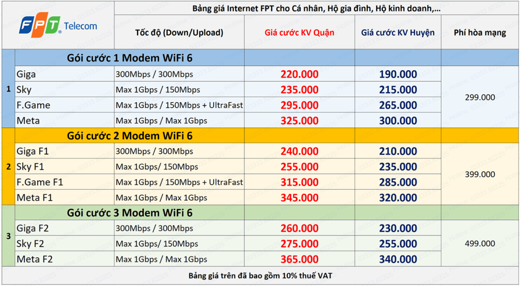 I.BẢNG GIÁ LẮP MẠNG INTERNET FPT