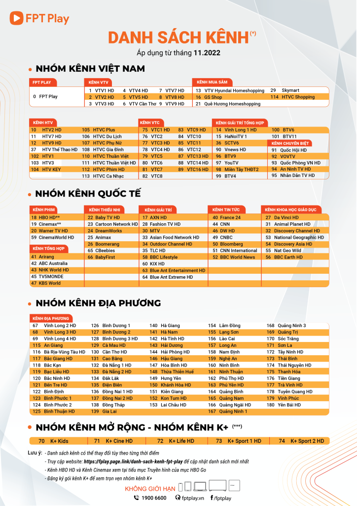 Lưu ý: Phí thiết bị và chính sách tặng tháng có thể tùy theo chính sách địa phương bổ sung nếu có, liên hệ thêm nhân viên kinh doanh để biết thêm chỉ tiết. Hotline tư vấn FPT Play: 0964 907 196